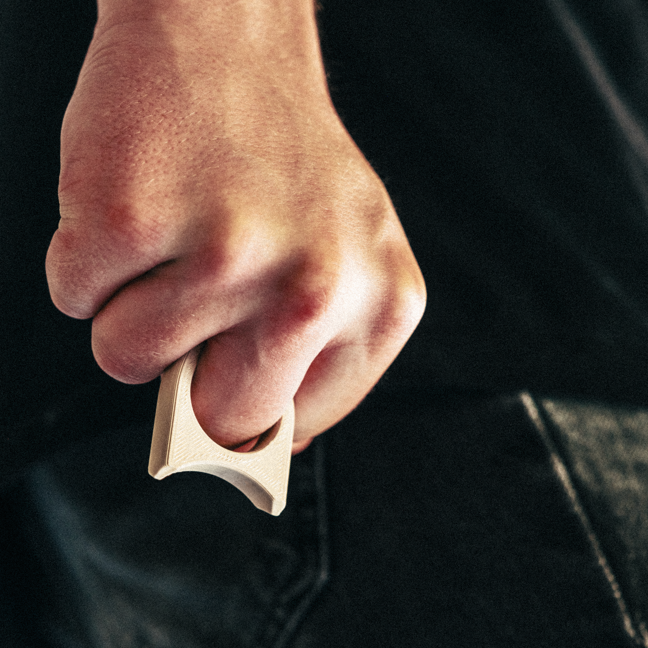 Designed to be a force multiplier, wear it around your finger like a knuck. Ideal for non-permissive environments.