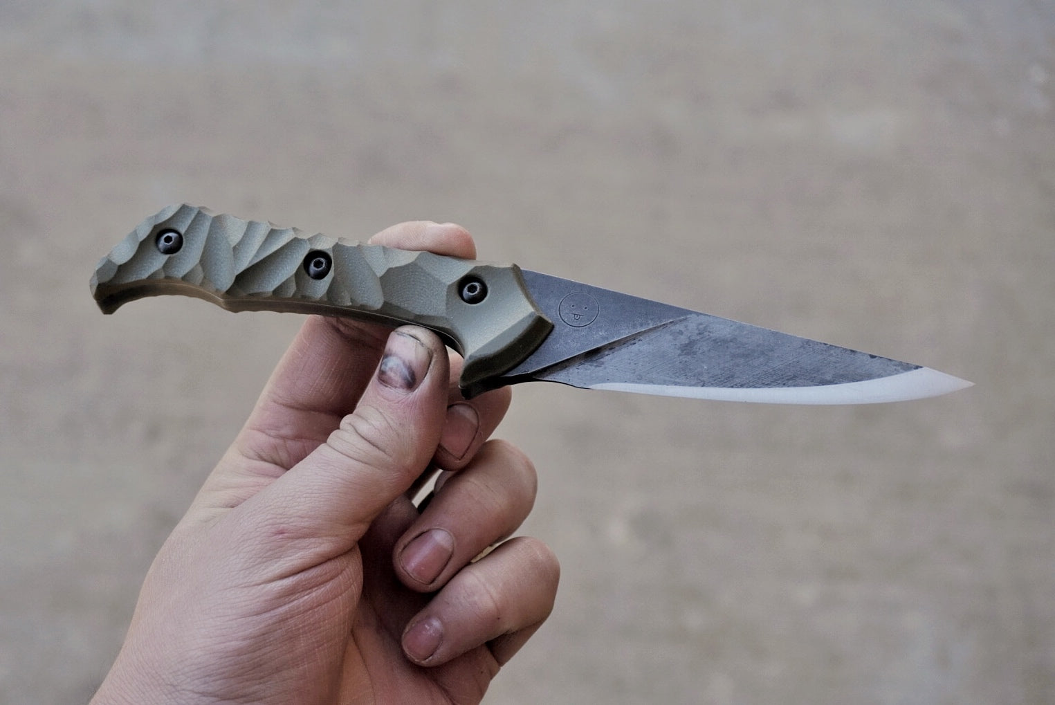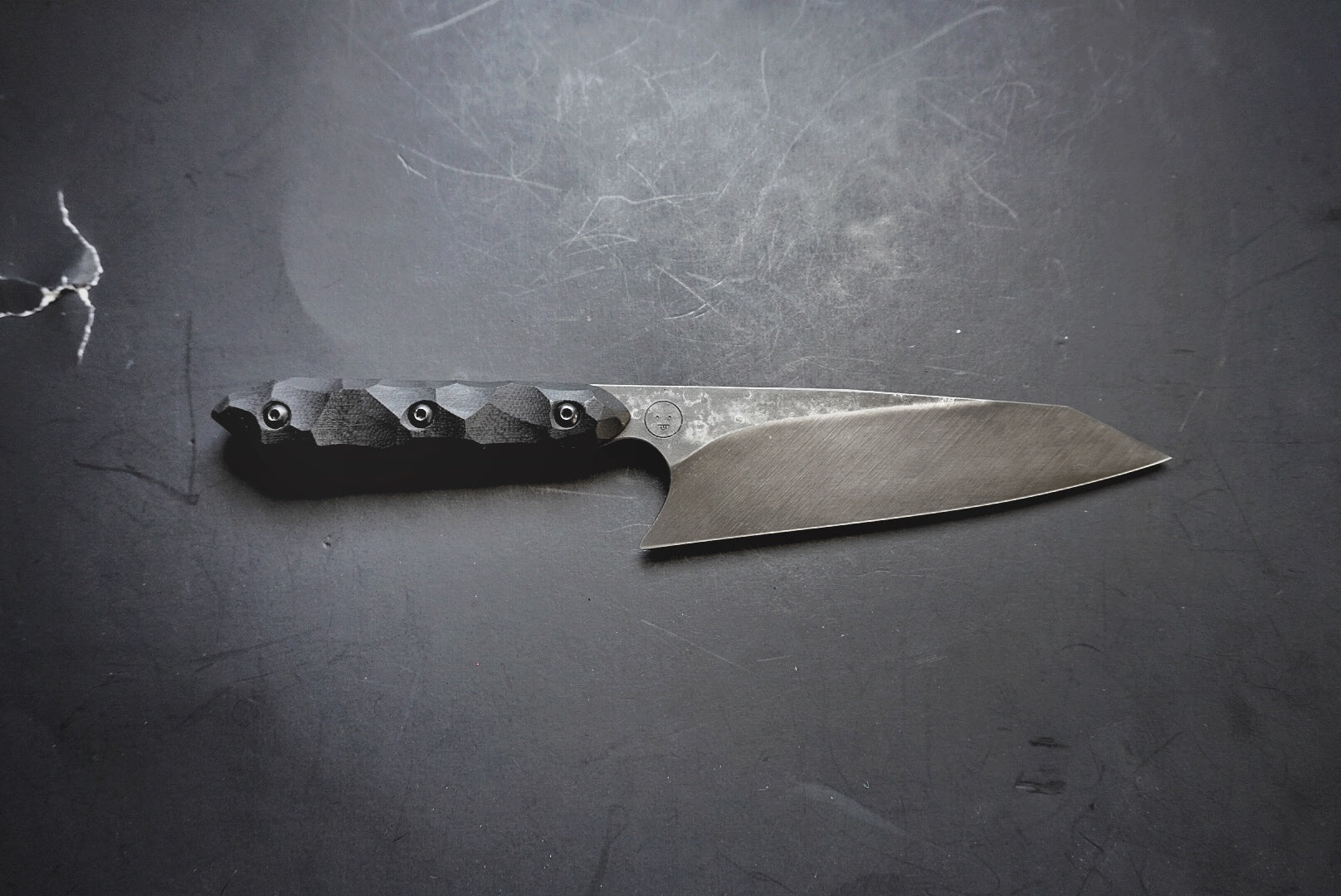 A small blade that packs a punch. Features a reinforced pointy tip, slicey scandi grind, and full-size handled for solid grip. The handle is big enough for most hands but small enough to carry and conceal. Ideal for everyday cutting tasks, and well suited for self-defense.