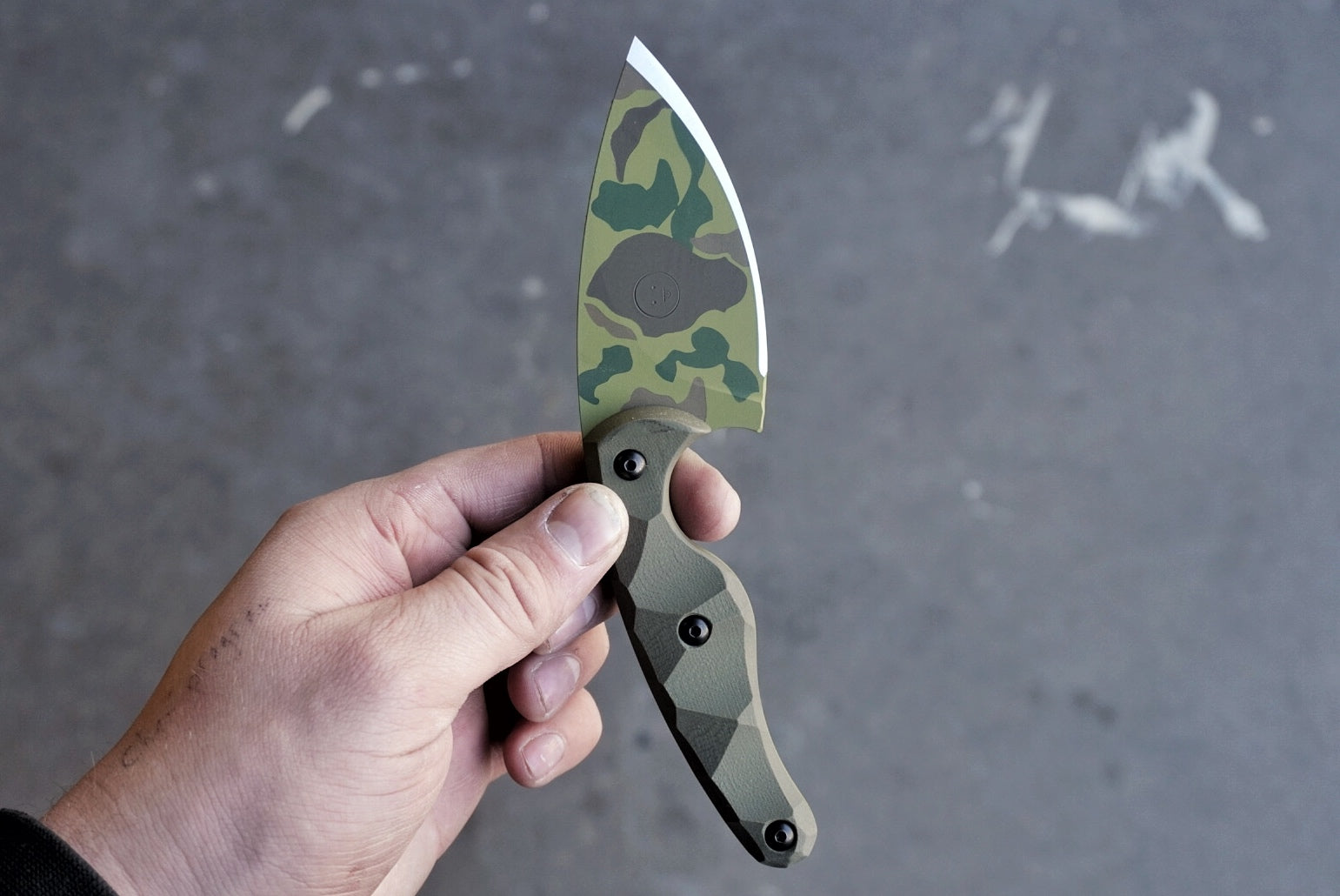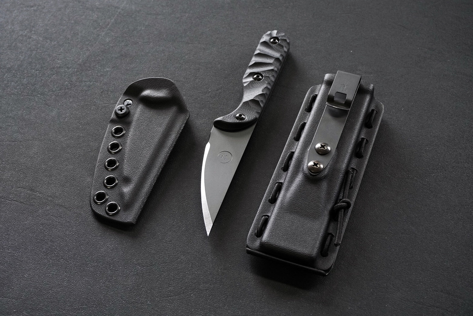 The Cuddlefish is the Squid's little brother with very similar features but a few key differences. Cuddlefish was actually the name I gave the first knife I made back in 2018. The design has matured through the years but the profile still retains a similar shape. This design started its life as a skinning knife and through the help of Anthony over at Lay Hate has evolved into a war belt or kit knife while still retaining it's skinning functionality. The curved spine allows comfortable appendix carry on a war belt while still offering a full grip. The compact nature of this knife allows for more carry options for many purposes including edc.