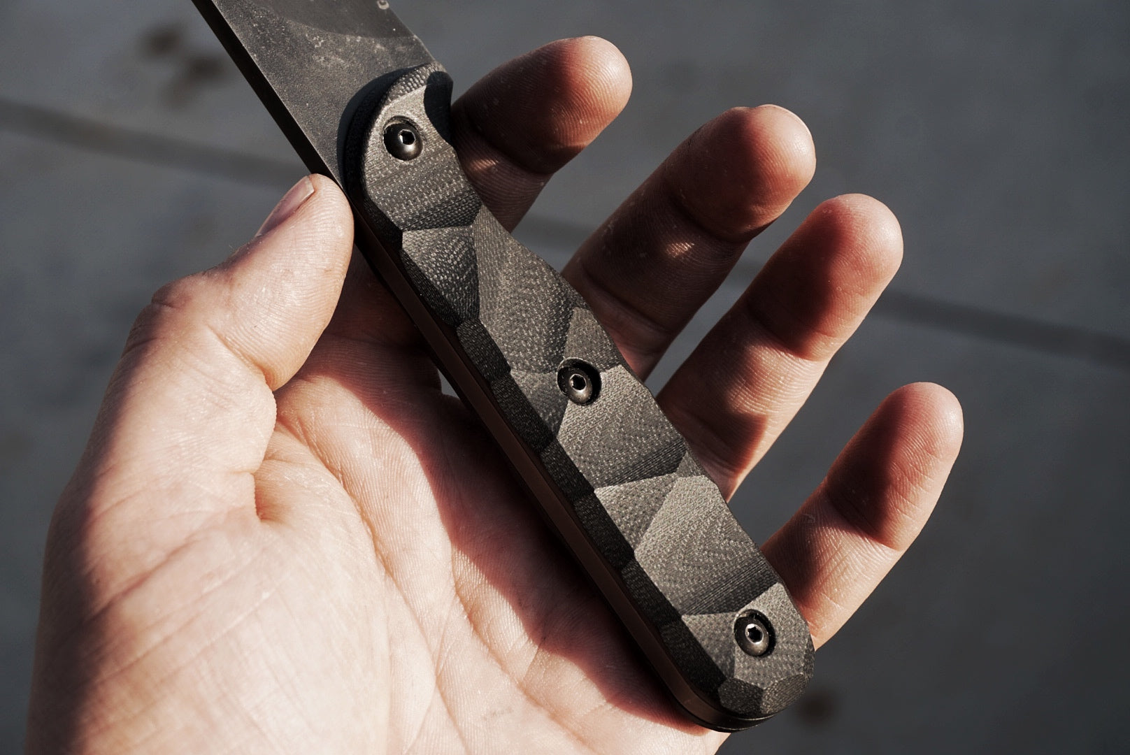 The Beekeeper gets it's name from my parents who are beekeepers. I made the first knife in this shape for my dad who found it useful as a hive tool. The name fit and the Beekeeper was born. This knife is truly a beast and can be useful in a variety of settings from beekeeping, to bushcraft and tactical applications. With a full flat grind and reverse taper that maintains full spine thickness all the way to the tip. This strengthens the tip while increasing rigidity and toughness.