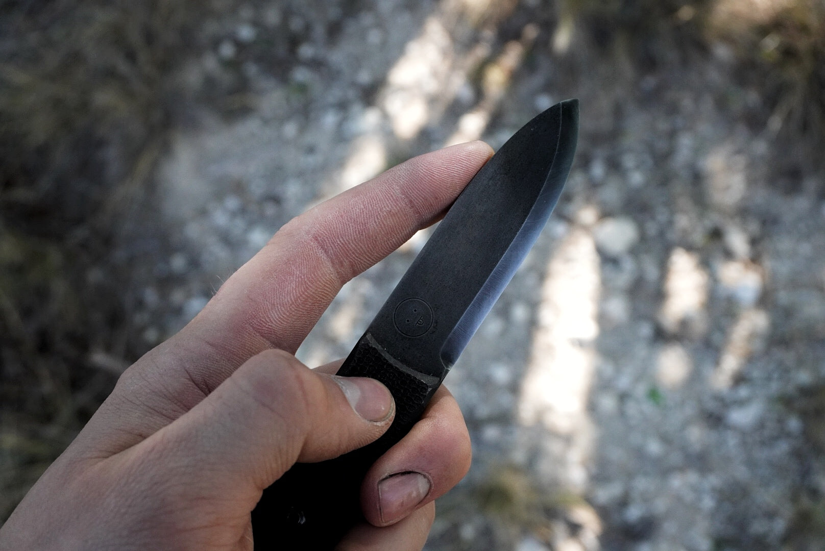 The curved spine gives you a more ergonomic grip when skinning. It’s very intuitive to put your finger on the spine and hold the handle in the cup of your hand. The tip of the blade extends naturally past your finger and puts your wrist in a more comfortable position.