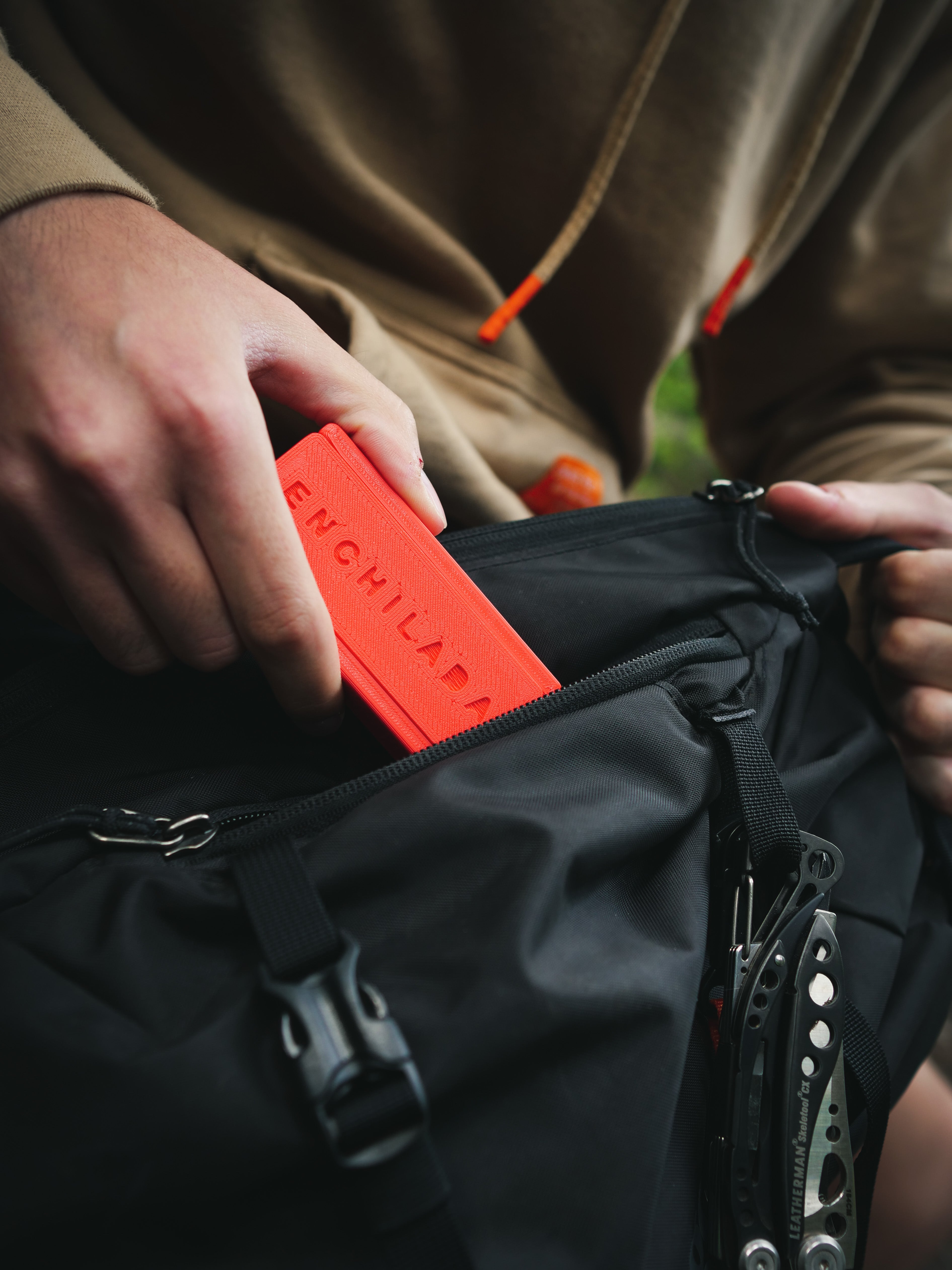 The Whole Enchilada is a compact, ultralight, expanding knife sharpener that is easy to use, and ready for adventure. With a 600 grit diamond stone and leather strop, you have a complete sharpening system in the palm of your hand. Whether you are sharpening your EDC during your lunch break or touching up your edge halfway through processing an elk, the Whole Enchilada has you covered.