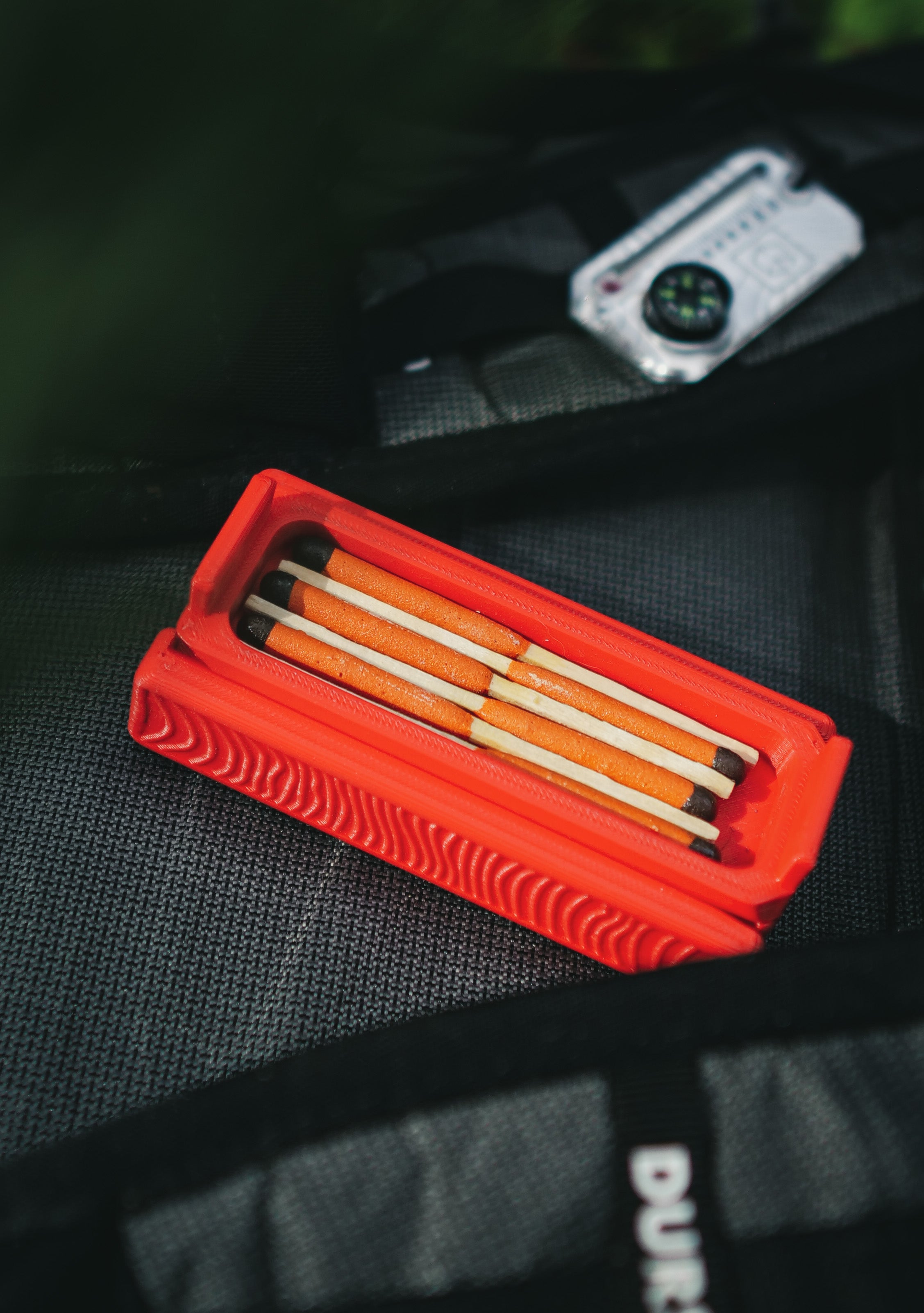 Store those extra bits, matches, tools, or other important items in the storage compartment underneath the sharpening stone.