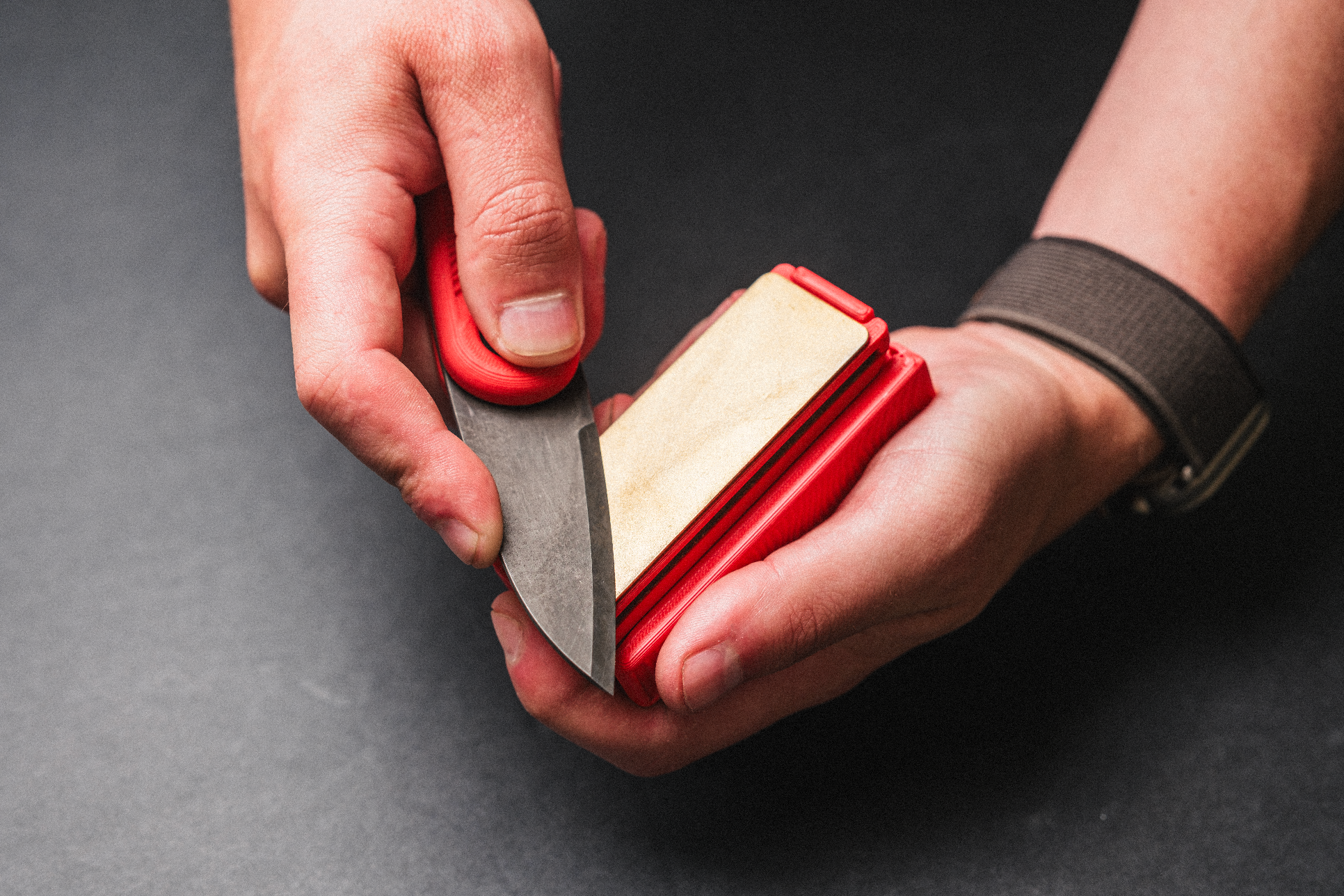Designed to be a self-contained system. The 3D printed housing snaps closed to securely contain your 600 grit diamond stone, leather strop, and anything else you have stored inside.