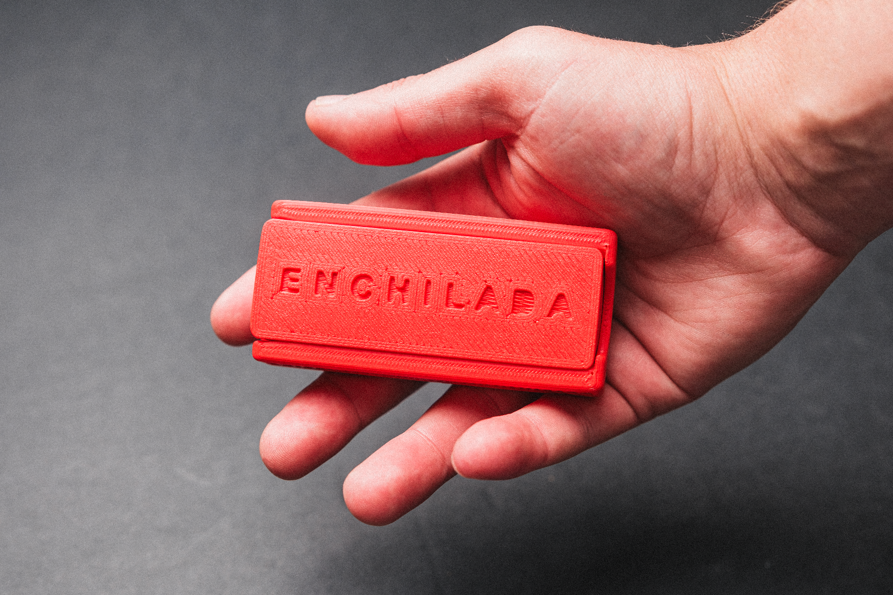 Pick a color that matches your style. The 3D printed polymer material we use allows us to create an enchilada that suites everyones personal tastes. Or mix and match for even more personalization options.
